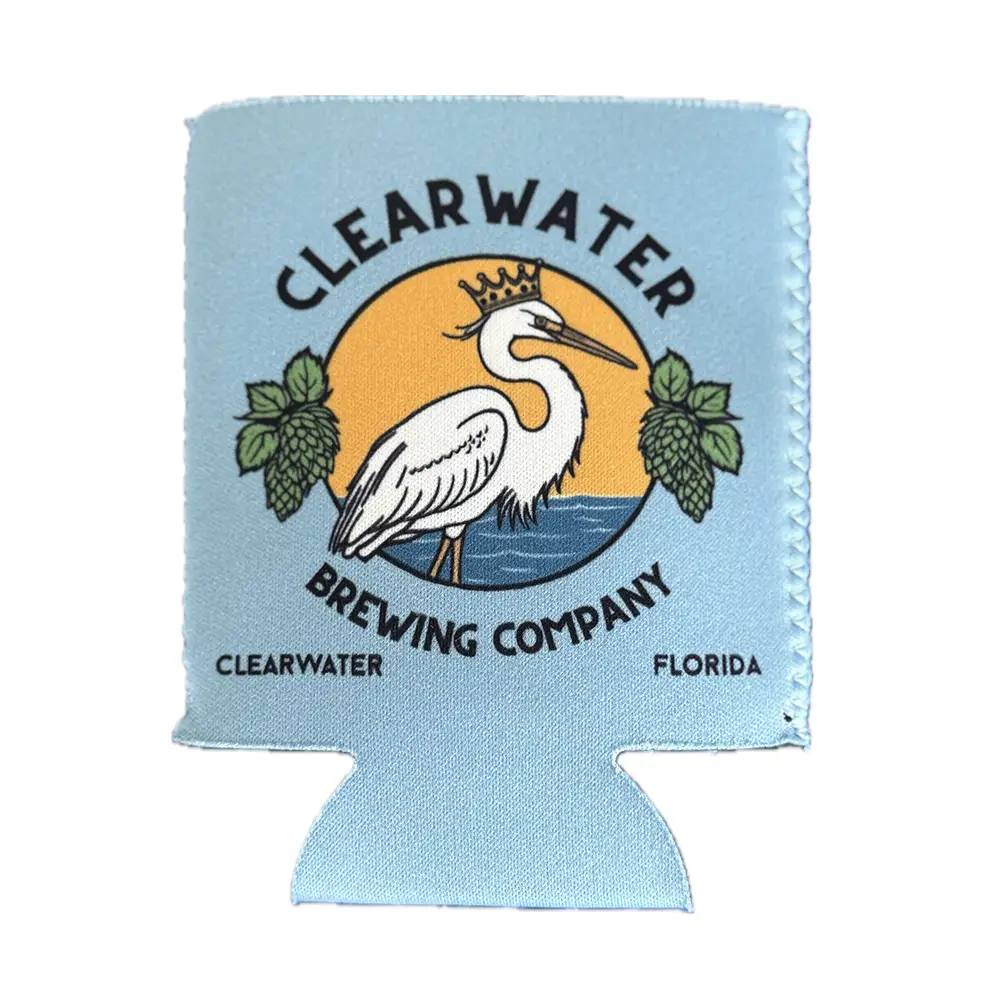 Premium Clearwater Brewing Company koozie for beer cans.